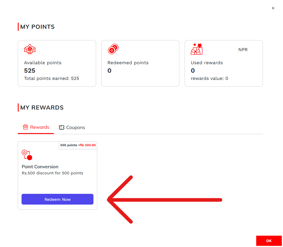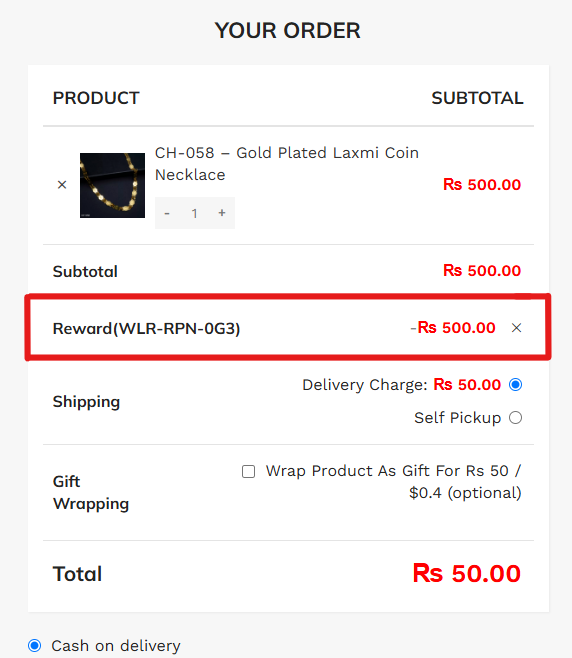 - Redeem Points: Use 500 points to get a ₨500 discount at checkout.